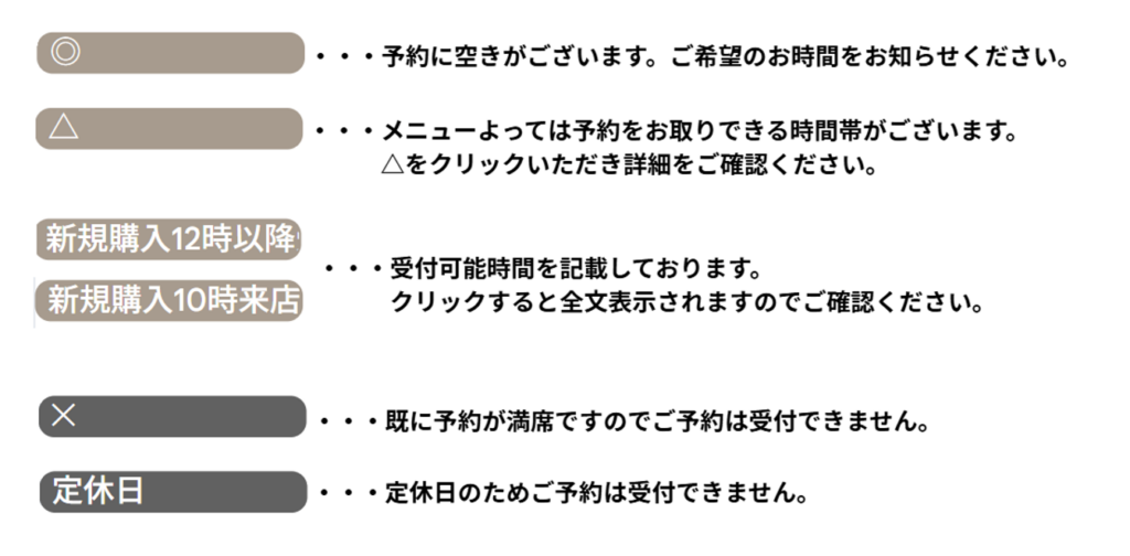 空き状況を確約できるものではございませんがご来店日時の参考にご覧ください。